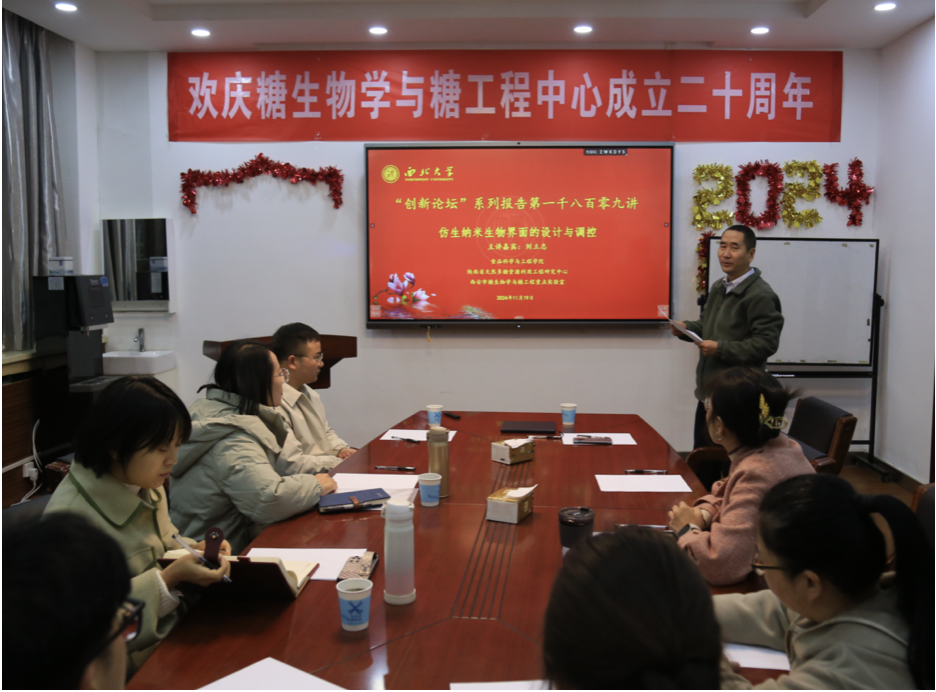 11月19日,由beat365在线体育官网科技处、科协主办,食品科学与工程学院承办的“西北大学创新论坛”第一千八百零九讲在太白校区举行。刘立志教授应邀来校为师生做了题为“仿生纳米生物界面的设计与调控”的报告。王仲孚教授主持报告会,beat365在线体育官网相关专业师生代表参加了报告会。