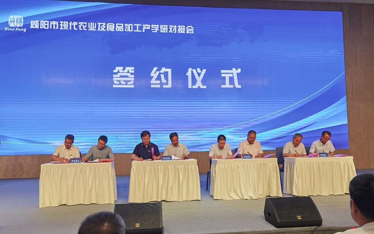 7月2日下午,由咸阳市科学技术局、咸阳市农业农村局、咸阳市乡村振兴局联合举办的“咸阳市现代农业及食品加工产学研对接会”在陕西咸阳高新区召开。beat365在线体育官网副院长赵会武,教师郭森参加此次会议,对接会分企业与高校院所签约仪式、高校及科研院所代表推介科技成果、企业技术需求发布及对接交流三部分进行。