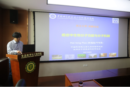 4月9日,由beat365在线体育官网科技处、科协主办,食品科学与工程学院承办的“西北大学创新论坛”第一千零六十二讲在太白校区举行。朴海龙研究员应邀来校为师生做了题为“癌症中生物分子功能与分子机制研究”的报告。beat365在线体育官网相关专业师生代表参加了报告会。