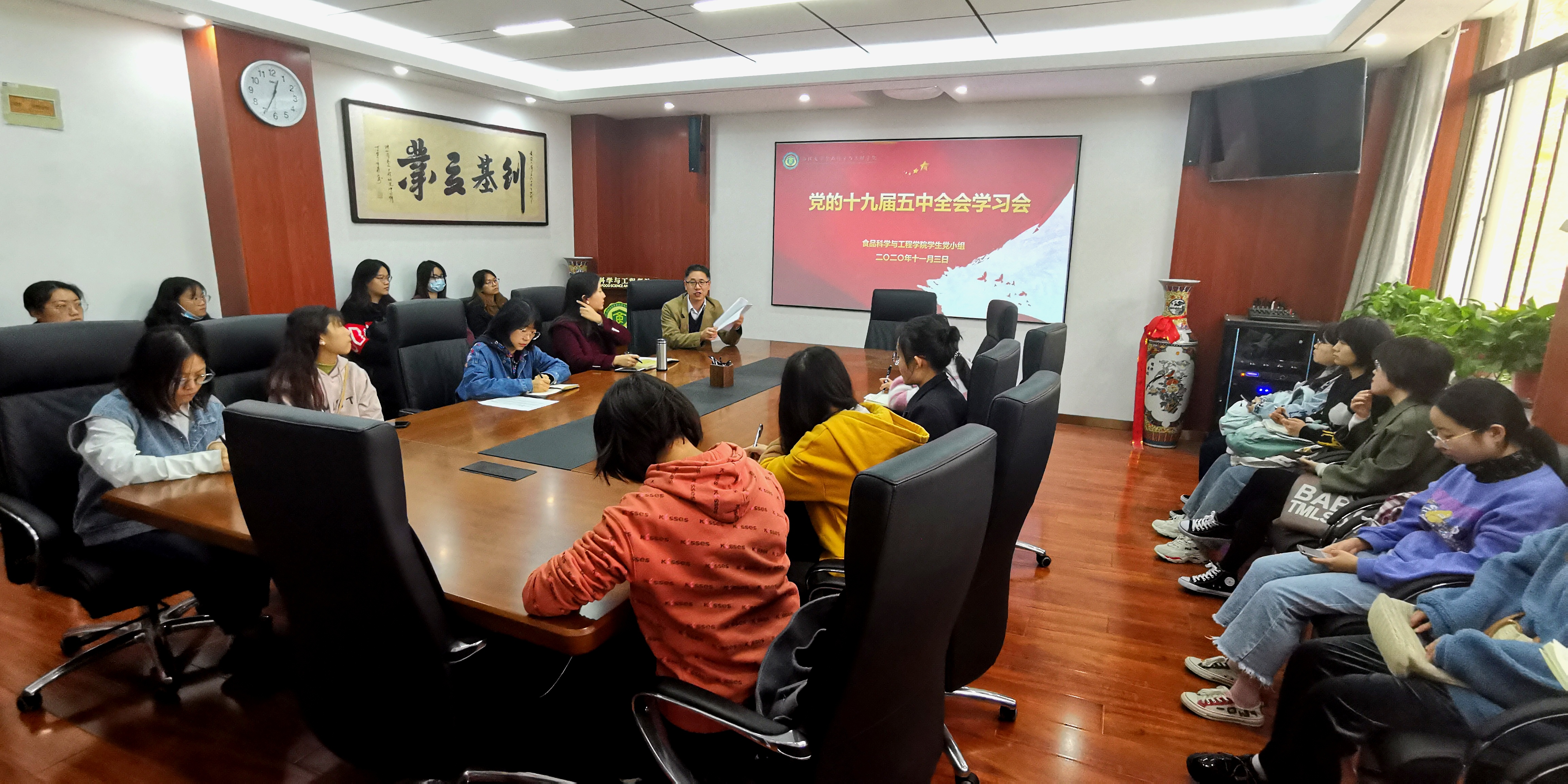 11月3日中午,beat365在线体育官网学生党小组组织召开集体学习会,专题学习中国共产党第十九届中央委员会第五次全体会议精神,学院直属党支部书记刘晓忠作了题为《十九届五中全会精神学习》的报告。