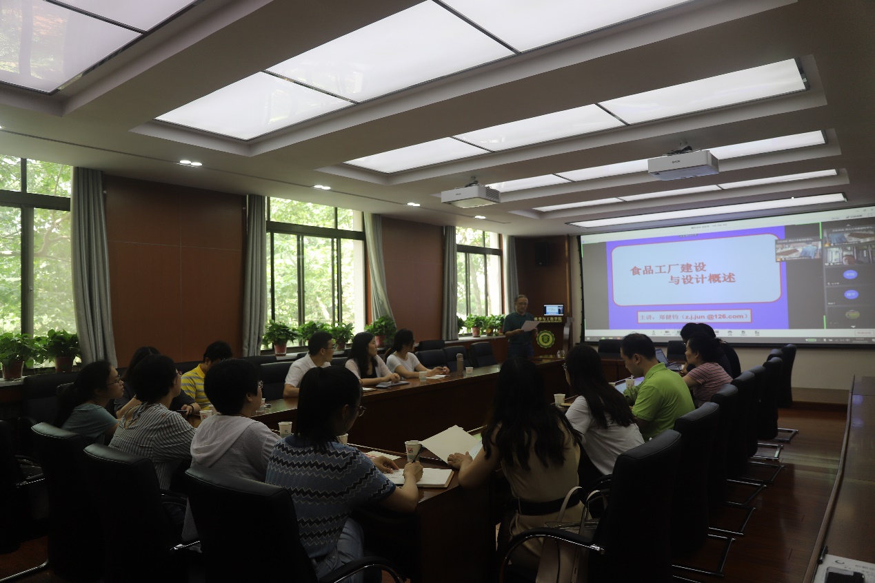 郑健钧老师从总平面设计、产品工艺流程设计、物料衡算、设备选型和管路设计等方面详细讲解了食品工厂设计的创新理念和实践,案例丰富,讲授生动,在场教师收获颇丰。