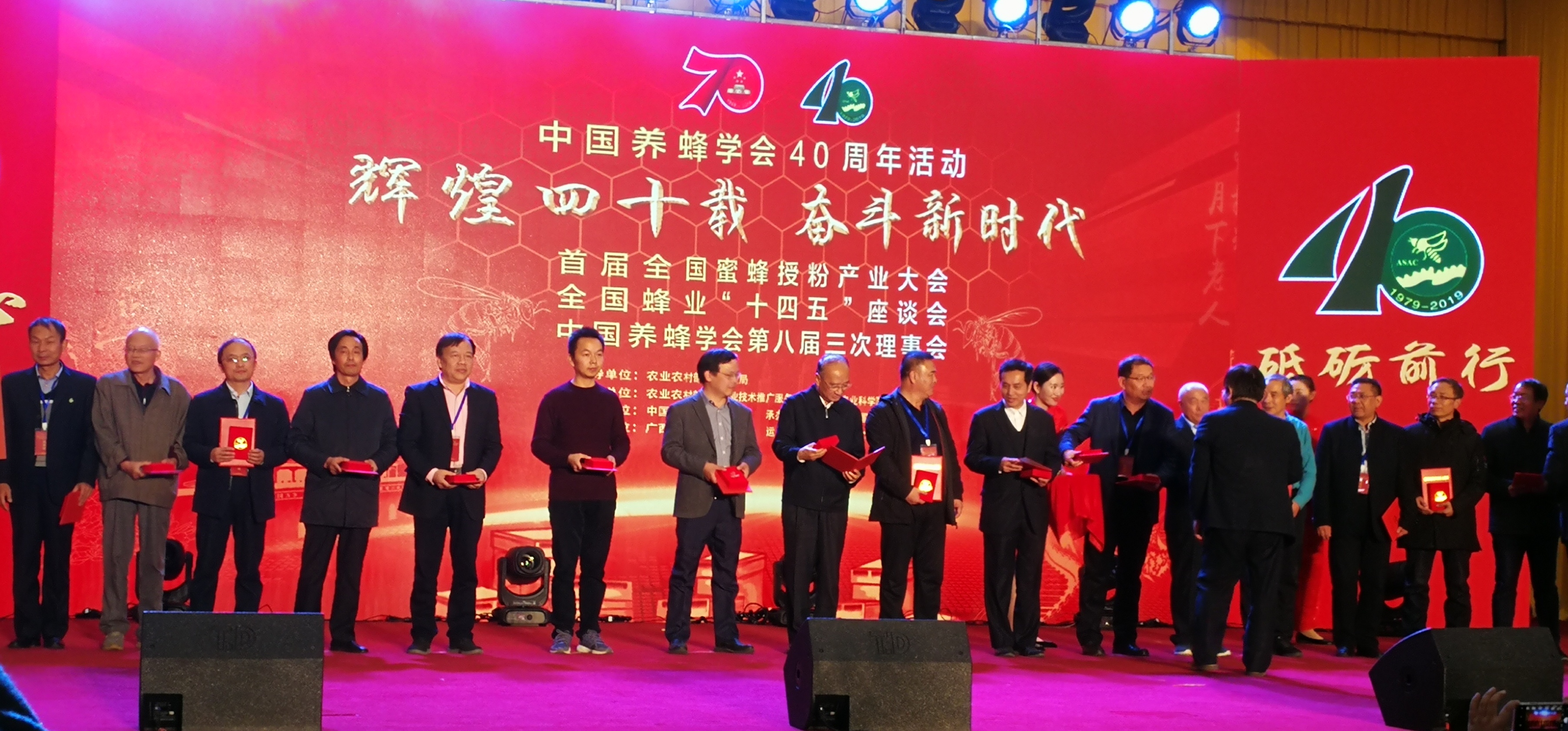 2019年11月26日上午,中国养蜂学会成立40周年庆典大会在北京友谊宾馆召开,beat365在线体育官网曹炜教授被授予“全国蜂业突出贡献奖(科研、教育)”。