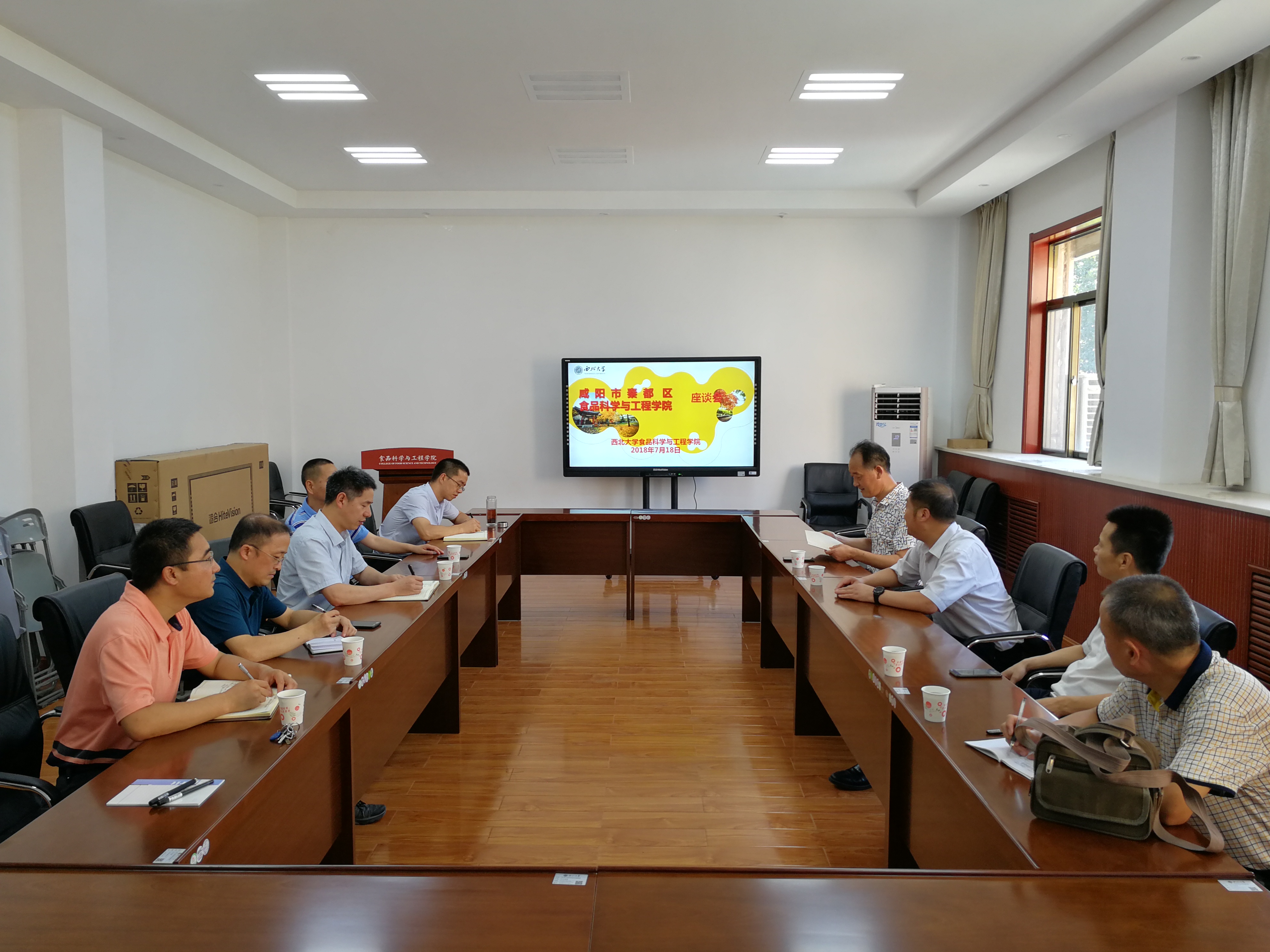 2018年7月18日上午,咸阳市秦都区科学技术局局长刘战辉、市场和质量监督管理局局长杨继康一行四人来beat365在线体育官网洽谈校地合作事宜,beat365在线体育官网领导班子成员参加。