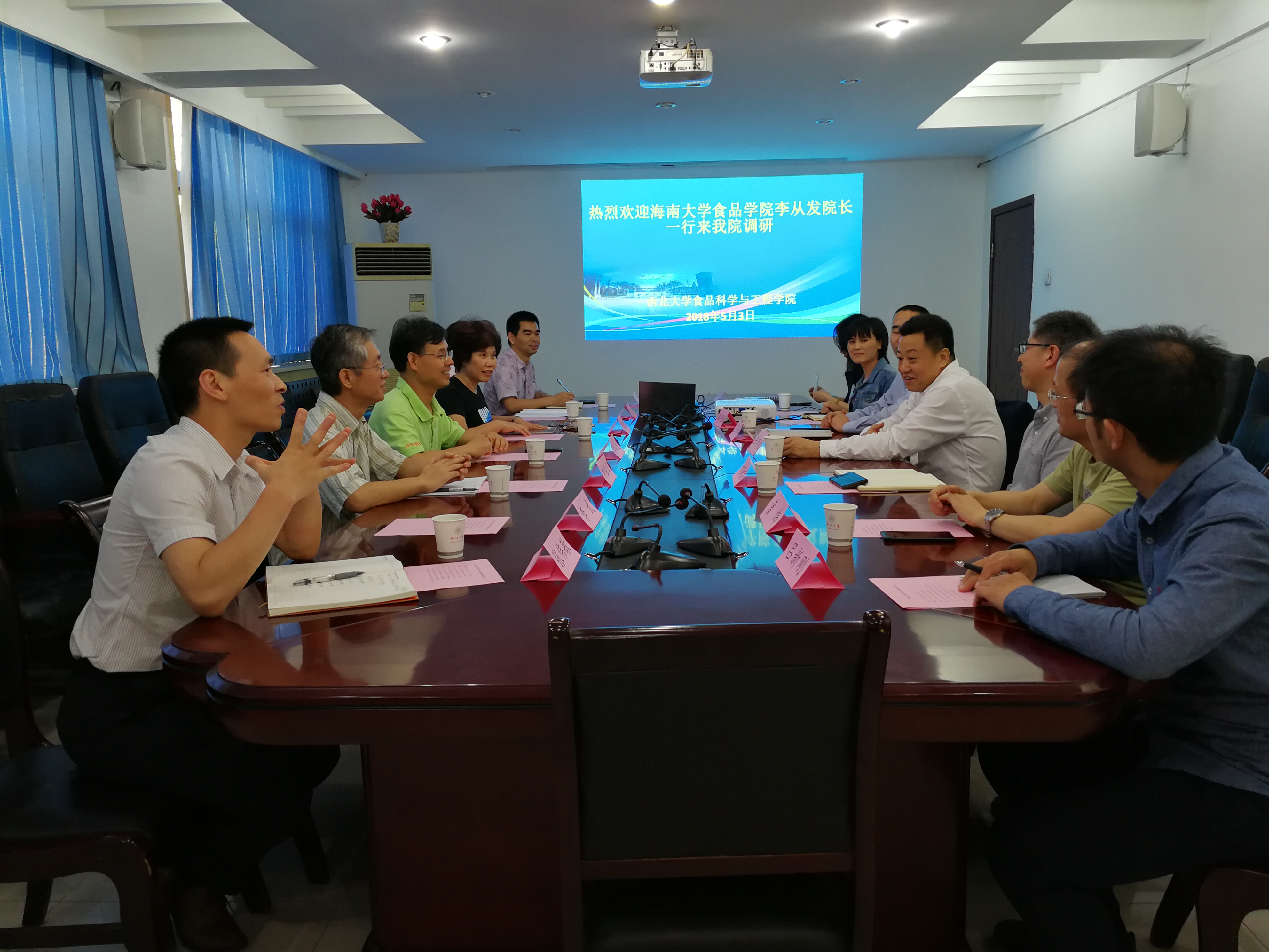5月3日下午,海南大学食品学院李从发一行6人来beat365在线体育官网,考察交流,beat365在线体育官网院长岳田利、党支部书记刘晓忠及相关老师参加交流座谈会。