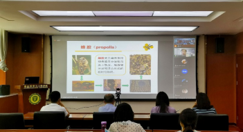 报告会上胡福良教授从蜂胶真实性及其化学成分等方面进行了学术报告。报告详细介绍了蜂胶真实性的研究背景、蜂胶植物来源与化学成分、蜂胶真实性的实验研究及蜂胶化学成分的生物转化。同时,胡福良教授还与师生分享了自己的科研经验,从研究方向的确立及实验思路的设计等角度给予了科研人宝贵建议,表示科学研究要以兴趣为起点,新的发现会带来精神的鼓舞。胡福良教授本次报告内容丰富,生动有趣,全场师生神情专注,收获颇丰。