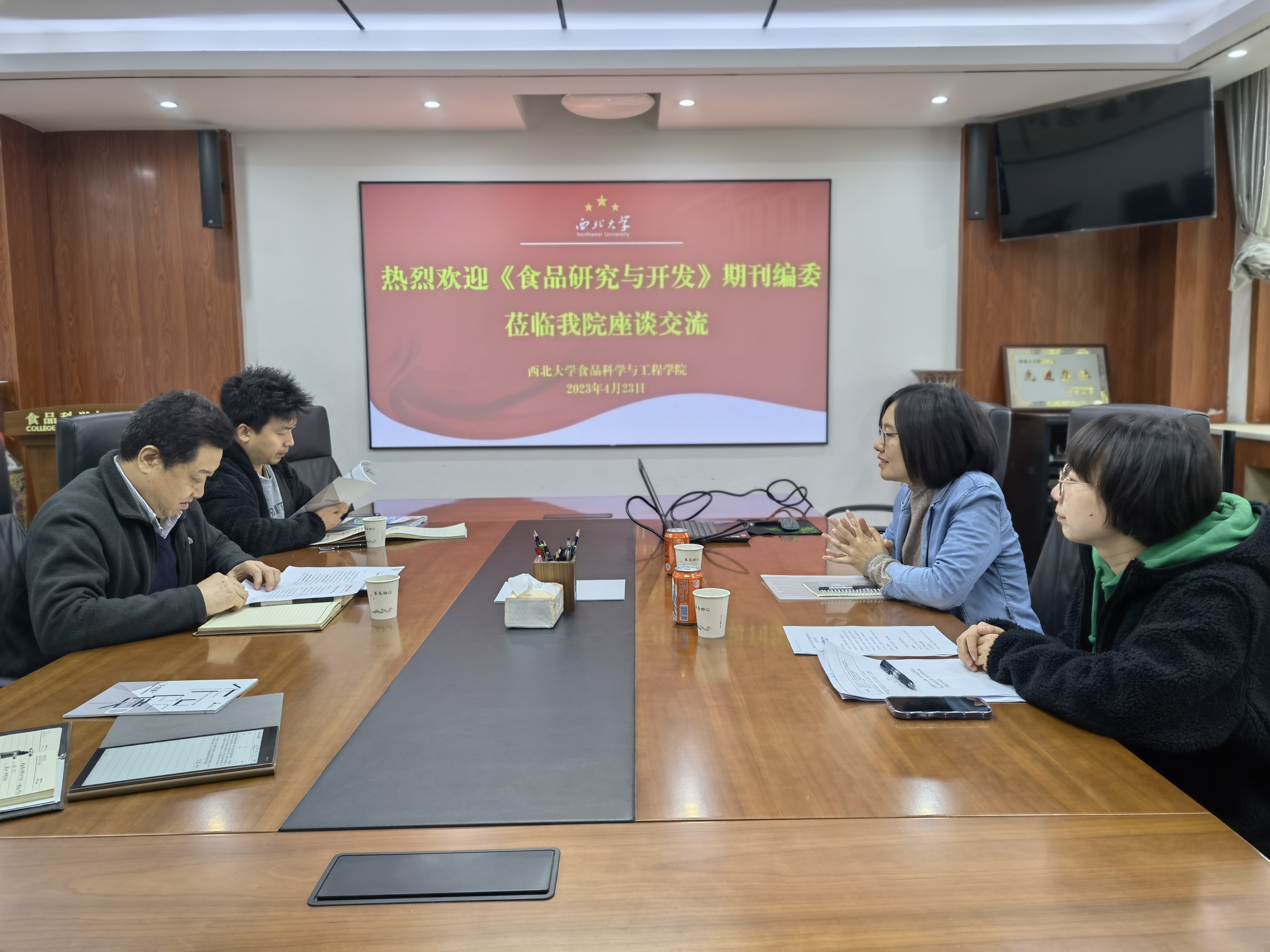 4月23日上午《食品研究与开发》期刊编辑部郑编辑、冯编辑来beat365在线体育官网交流座谈,岳田利院长及部分教师出席了座谈会。