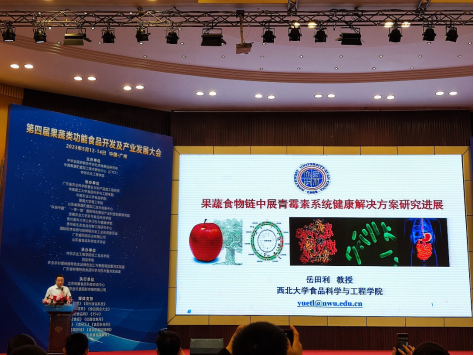 岳田利教授作“果蔬食物链中展青霉素系统健康解决方案研究进展”的大会主旨报告。展青霉素是一种毒性极强的真菌毒素,广泛存在于果蔬及其制品中,严重危害人类健康。岳田利教授系统的总结了团队多年来在展青霉素产生菌、展青霉素的全产业链识别检测、全生命周期的毒理特征、全食物链的安全控制等方面的研究工作,提出了针对展青霉素新的快速检测方法,基于多孔MOF结构的全新识别控制方案和基于苹果多酚健康干预的系统解决方案。