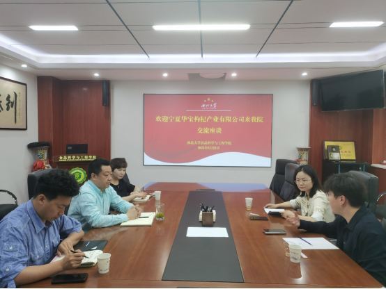 5月23日,杞滋堂(宁夏)健康产业有限公司总经理王方舟、研发经理路冉来beat365在线体育官网座谈交流,共同研讨枸杞健康食品制造产业发展相关事宜。岳田利院长和营养健康食品制造与安全控制团队袁亚宏教授及相关教师出席了座谈会。