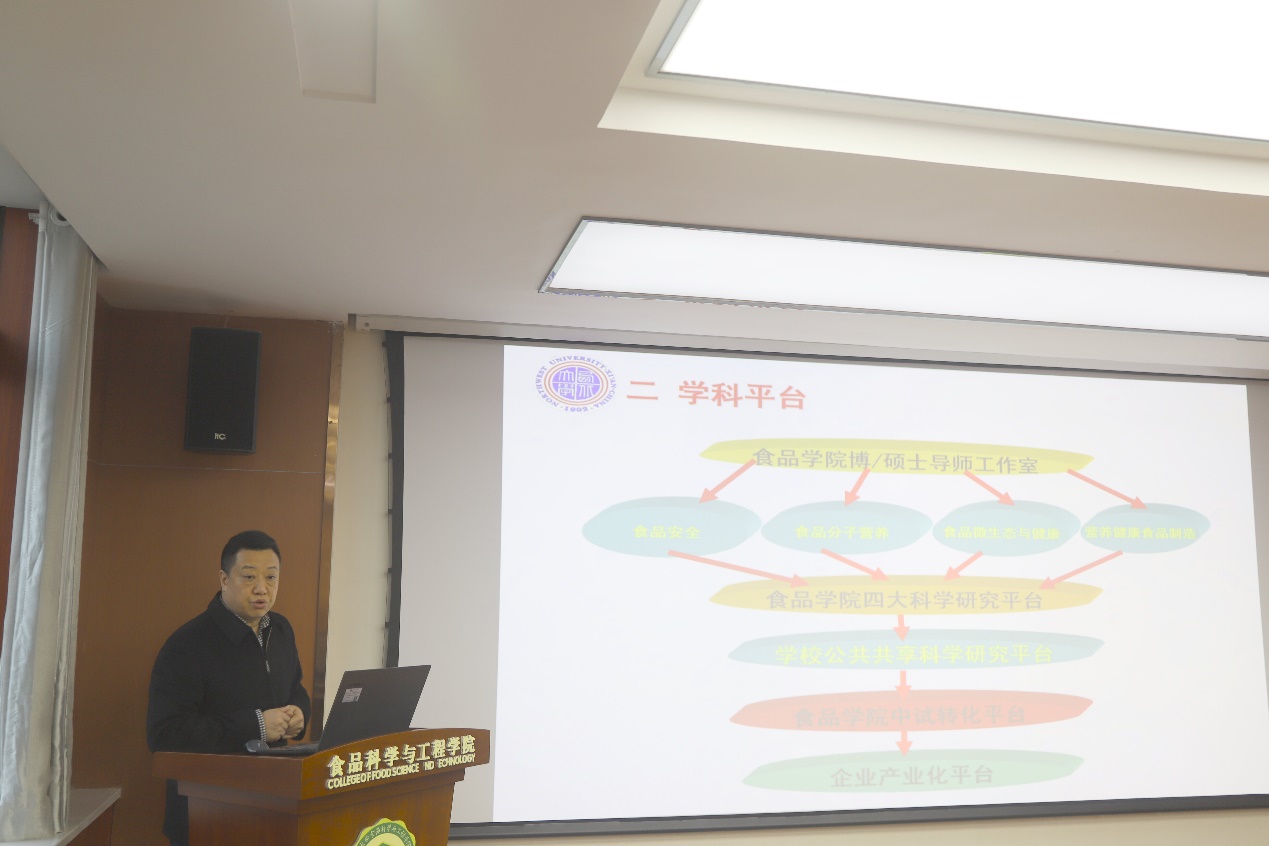 孙庆伟充分肯定了学院取得的成绩,强调要进一步明确定位,依托陕西及西北特有资源条件,按照“小而专、小而精、小而美”思路建设具有显著陕西特色西大特色的食品学院。要狠抓人才队伍建设,引育并举,严格把关,创新机制,加大青年人才培育力度,并就研究生培养、太白校区建设作出要求。