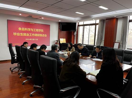 调研会上,学院党委书记刘晓忠汇报了就业九条落实情况和2024届毕业生就业进展、存在的问题和下一步工作举措。院长岳田利结合食品学科人才培养,汇报了学院促进毕业生充分就业的短期与中长期举措。学院党委副书记张霄具体汇报了2024届毕业生就业工作开展情况。
