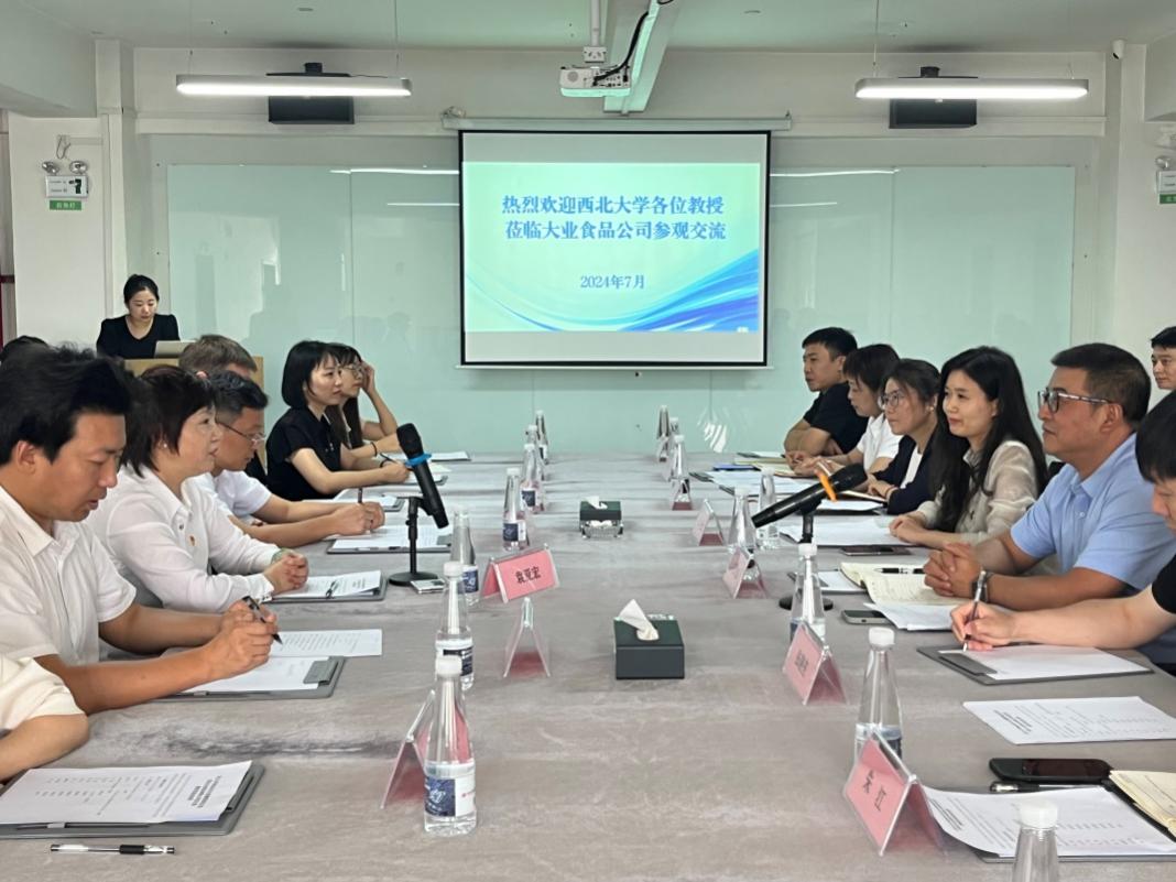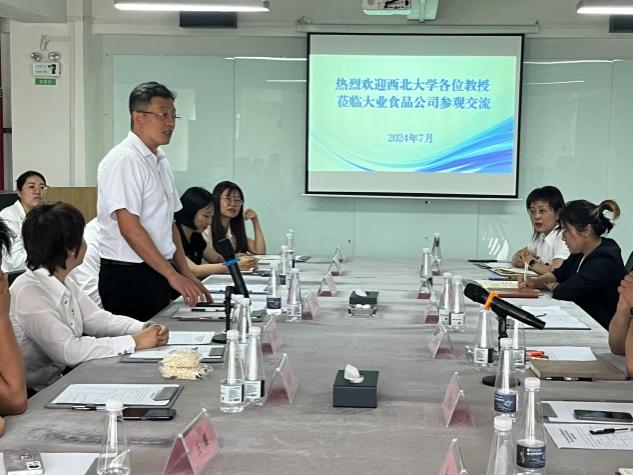 西安饮食股份有限公司公共事务中心负责人朱艳就企业在科技赋能新质生产力,落实科技赋能企业发展进行了解读,同时,对西北大学与西安饮食的进一步合作给予期待。大业食品公司副总经理高晔文介绍了大业食品公司的概况,副总经理朱江介绍了当前企业架构、生产、运营状况及食品研发、质量体系建设情况。