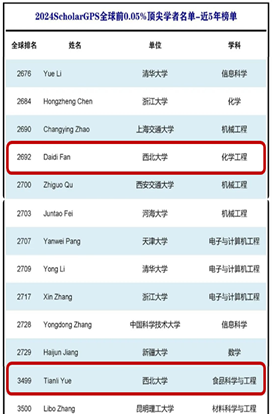 beat365在线体育官网岳田利教授、樊君教授入选ScholarGPS “2024年全球前0.05%顶尖学者榜单”