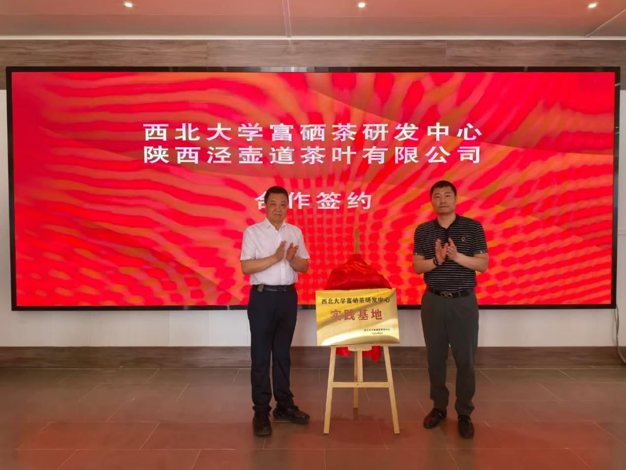 项目签约仪式上,罗亮和刘敏分别代表宏飞茯运和泾壶道与袁亚宏教授进行项目签约,岳田利与杨飞共同为西北大学富硒茶研发中心实践基地揭牌,杨飞为冯克伟副教授颁发了企业科技副总聘书。