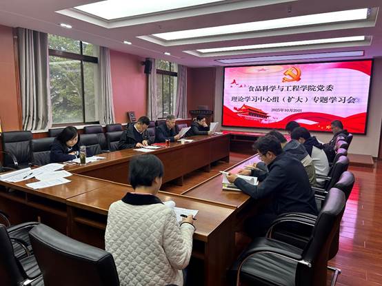 刘晓忠在总结时强调,要把学习宣传贯彻党的二十届四中全会精神作为当前和今后一个时期的重大政治任务,坚持深学细悟,自觉把思想和行动统一到全会部署上来;各党支部要科学制定学习计划,利用“三会一课”、主题党日等,做到全会精神全员学习全覆盖;要将学习宣传贯彻全会精神与落实立德树人根本任务相结合,与精心编制“十五五”规划相结合,持续推动食品学科发展再上新台阶。