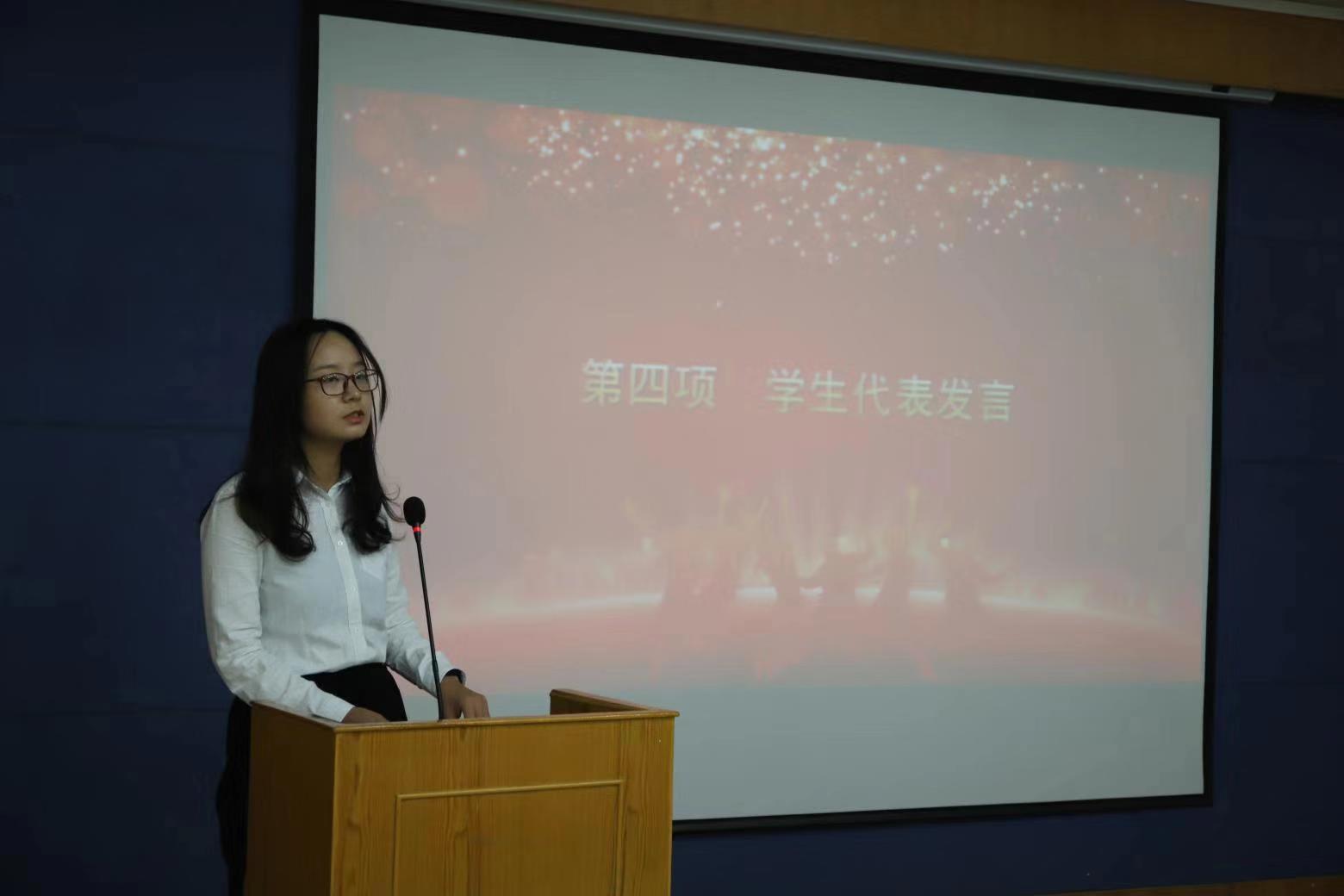 接下来,研究生学生代表张雪倩、本科生新生代表高润分别发言,表示将珍惜韶华,奋发有为,坚定理想信念,锤炼坚毅品质,牢记“公诚勤朴”校训,在学院提供的良好平台上,书写美丽的人生篇章