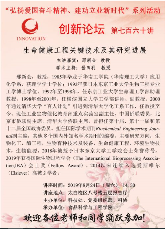 西北大学创新论坛第七百六十讲(“弘扬爱国奋斗精神、建功立业新时代”系列活动 ):生命健康工程关键技术及其研究进展