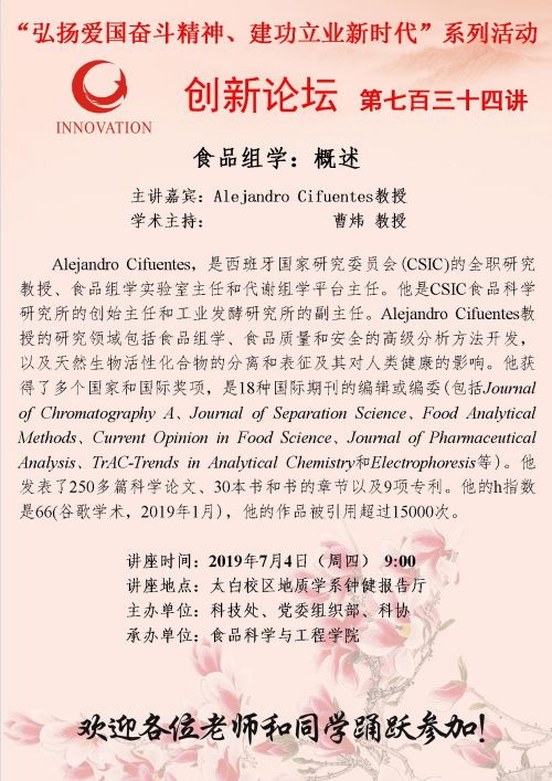西北大学创新论坛第七百三十四讲(“弘扬爱国奋斗精神、建功立业新时代”系列活动):食品组学:概述