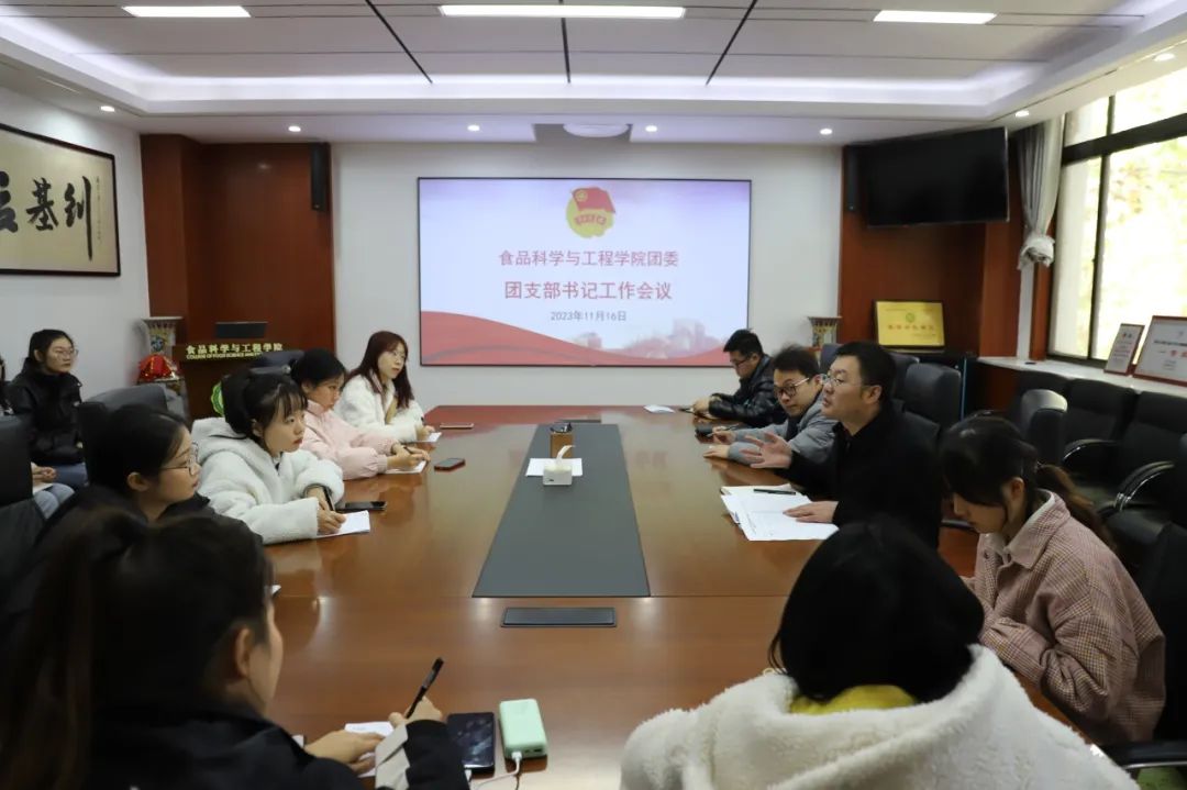 11月16日中午,食品科学与工程学院团委召开团支部书记工作会议,就学院“三代会”相关工作、团员和青年主题教育和支部建设相关工作进行安排。beat365在线体育官网团委各部门工作人员、全体团支部书记参加会议。