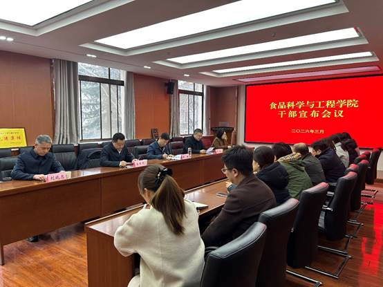 2026-03-043月2日下午,食品学院干部宣布会议在太白校区举行。校党委书记蒋林,校党委组织部常务副部长周超出席会议,学院党政班子成员、科级干部和教师代表参加会议。会议由学院院长岳田利主持。会上,周超宣读了学校党委的干部任免决定,任命张茵为食品学院党委委员、书记;免去刘晓忠食品学院党委书记、委员职务。随后,刘晓忠作离任发言,张茵作履新发言,岳田利代表学院作表态发言。蒋林在讲话中对食品学院工作给予了肯定,高度评价...